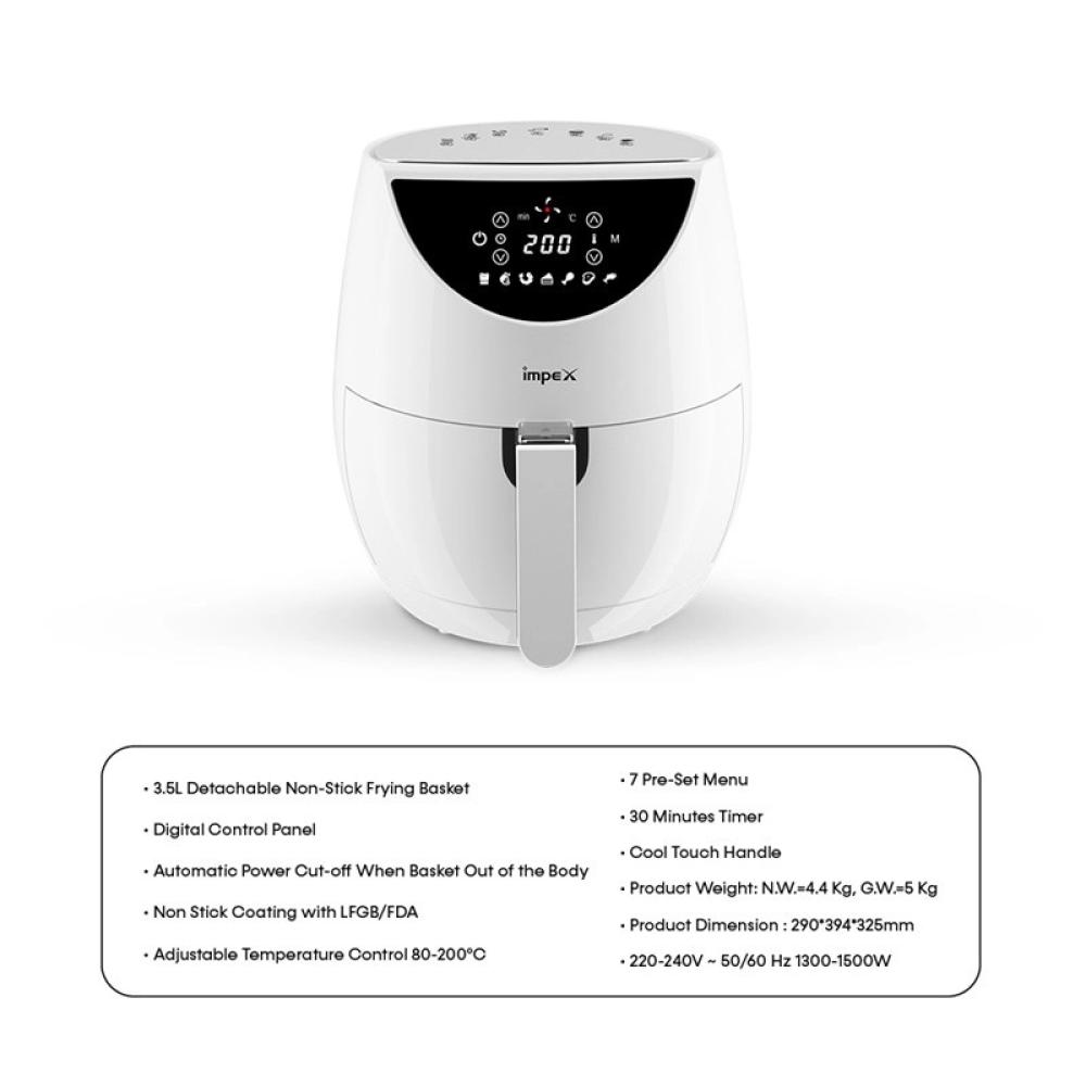 تتميز قلاية إيمبكس الهوائية AF 4301 بتقنية Rapid Air المتطورة التي تتيح لك تحضير أطعمتك المفضلة بطريقة صحية مع تقليل الدهون بنسبة تصل إلى 80% مقارنة بالقلي التقليدي. تأتي بسعة 3.5 لتر مناسبة لتحضير وجبات لشخصين إلى ثلاثة أشخاص، وبقوة 1500 واط تقدم أداءً سريعاً وكفاءة عالية في الطهي. نظام التدفئة الحرارية بزاوية 360 درجة يضمن توزيعاً متجانساً للحرارة للحصول على طعام مقرمش وذهبي من جميع الجوانب.