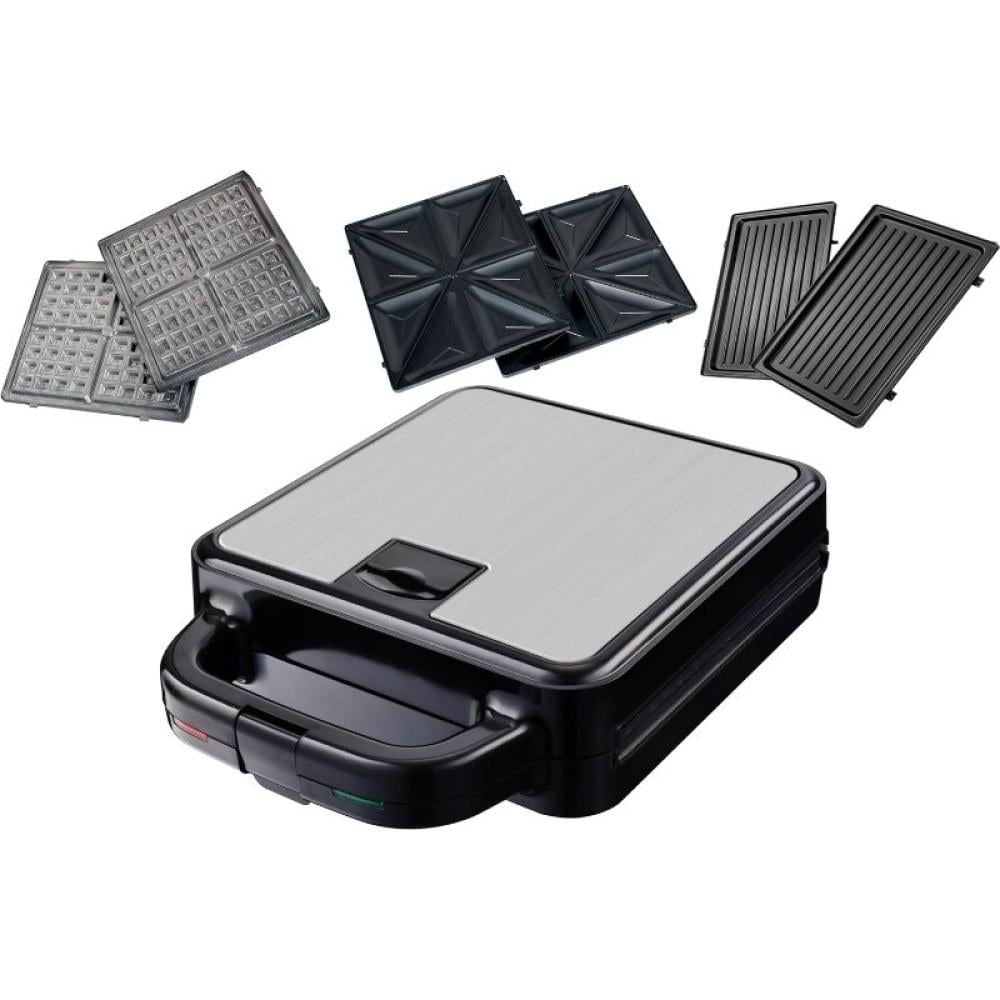 - تصميم 3 في 1: أطباق قابلة للفصل لتحضير الوافل، الساندويتش، والشوي.