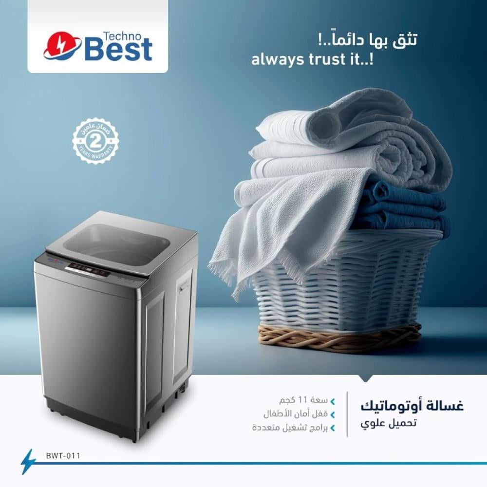 احصل على غسالة تكنو بيست الأوتوماتيكية الآن واستمتع بتجربة غسيل سهلة، فعالة، ومريحة! اجعل مهام الغسيل جزءًا ممتعًا من يومك.