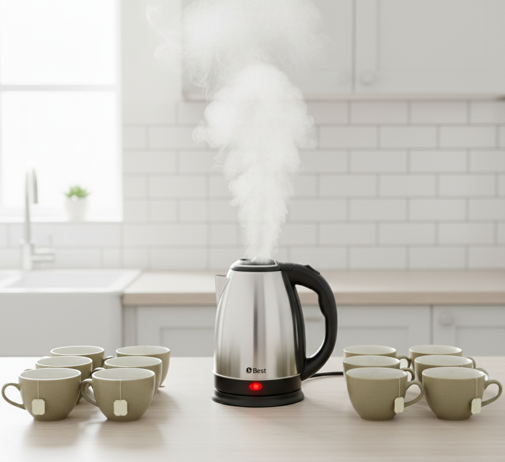 تتمتع الغلاية بسعة 1.8 لتر، مما يجعلها مثالية لتحضير كمية كبيرة من المياه بسرعة لتلبية احتياجاتك اليومية سواء كانت لتسخين الماء للعائلة أو لاستخدامات مكتبية. مع سعة كبيرة، لن تحتاجي للانتظار طويلاً لملء الأكواب أو إعداد المشروبات.