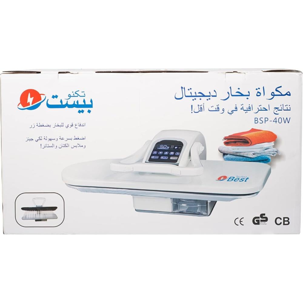 - كاوية الكبس "BSP-40W" من تكنو بيست هي الخيار المثالي لمن يسعى للحصول على أداء ممتاز في الكي، مع تسريع العملية بفضل السطح الواسع. مع إرشادات صوتية و مؤشر رقمي، سيكون لديك تحكم كامل في درجة الحرارة ومستوى المياه، مما يجعلها مناسبة حتى للمبتدئين. قفل الأمان يضمن لك نقل الكاوية بأمان. إذا كنت ترغب في تجربة كي سريعة وفعالة، فهي الخيار المثالي لك.