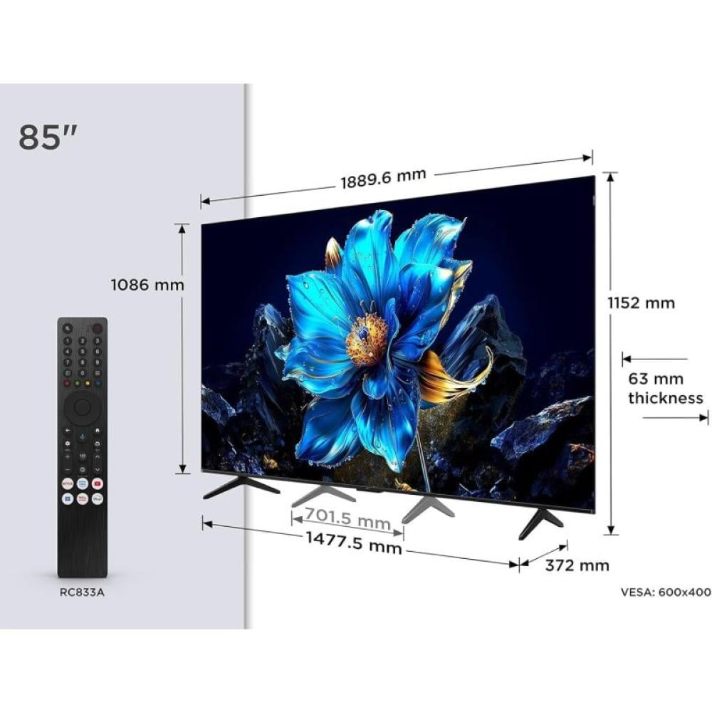 شاشة تي سي ال الذكية 85 بوصة QLED 4K جوجل - 85P7K: انغمس في عالم من الترفيه الفائق!