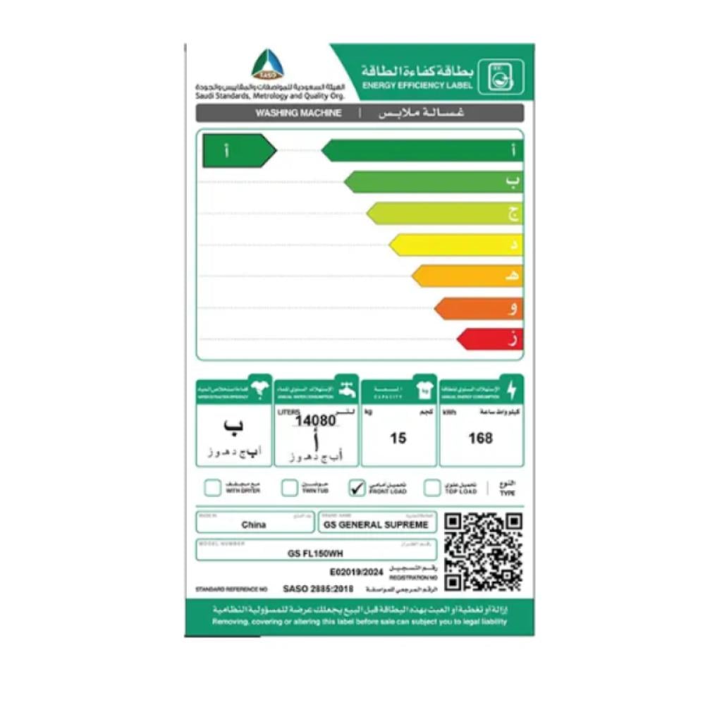 تم تصنيع هذه الغسالة في الصين، وتتميز بكفاءة طاقة من الفئة A، مما يجعلها خيارًا مثاليًا لأولئك الذين يهتمون بتوفير الطاقة.