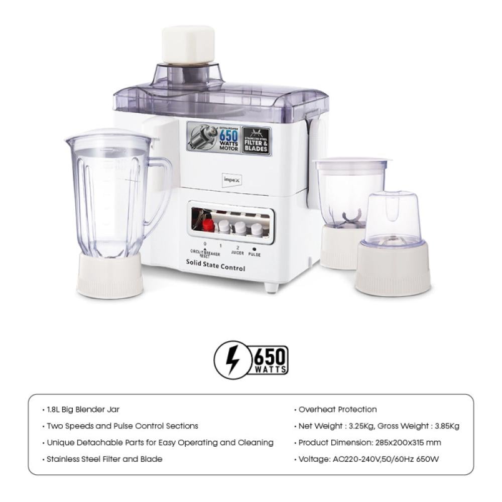 - ميزات خلاط إمبكس 650 واطمحرك قوي 650 واط للحصول على نتائج خلط ممتازة