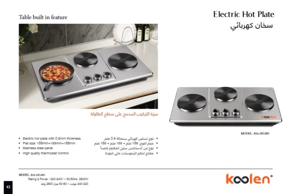 طباخ كهربائي مسطح كولين 3 عين حجر 2800 واط - 816105006