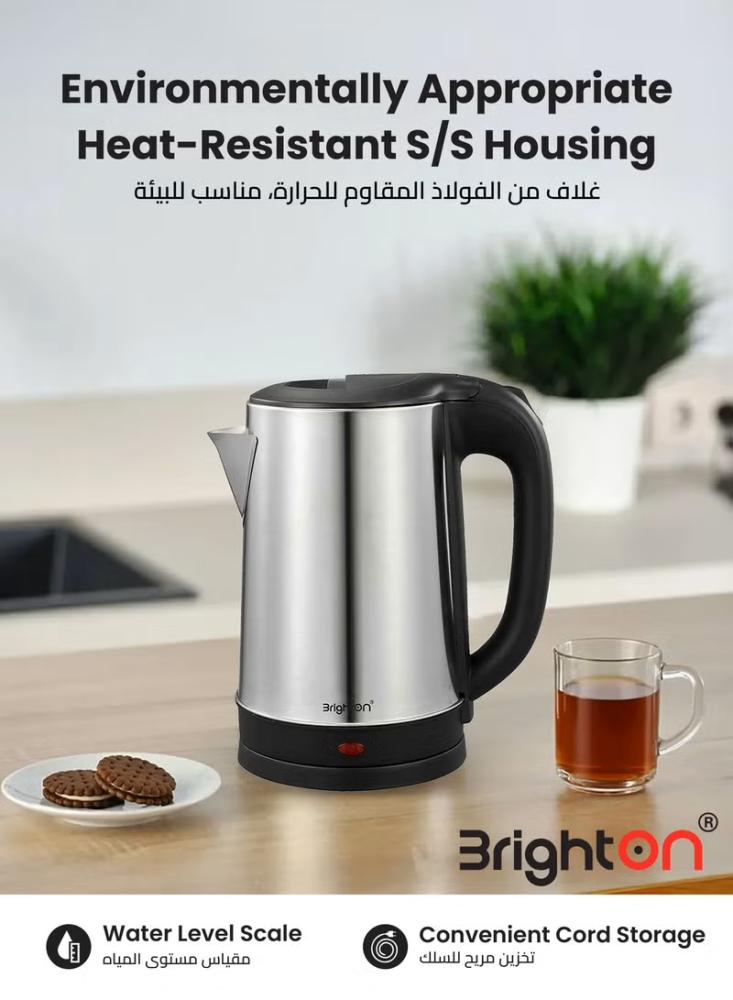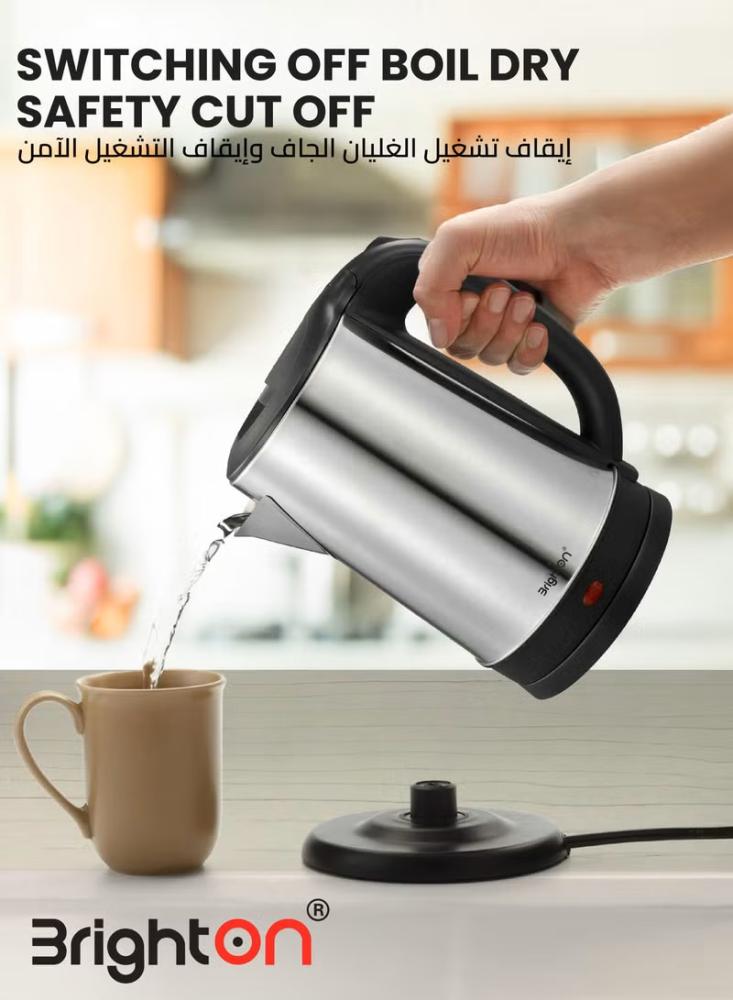 ارتقِ بروتينك اليومي مع غلاية برايتون الكهربائية 1.8 لتر من الفولاذ المقاوم للصدأ، مزيج مثالي من الأناقة والكفاءة والأمان. تم تصميم هذه الغلاية بدقة لتعزيز جمالية مطبخك مع تقديم أداء استثنائي. يخلق جسم الغلاية الأنيق المصنوع من الفولاذ المقاوم للصدأ، بلمسته النهائية المصقولة، مظهرًا عصريًا وأنيقًا يندمج بسلاسة في أي ديكور مطبخ. يضمن استخدام المواد عالية الجودة المتانة وطول العمر، مما يجعل هذه الغلاية إضافة موثوقة لمنزلك. استمتع براحة التسخين السريع والمتساوي مع ملف التسخين المخفي القوي، الذي يغلي الماء بكفاءة، مما يوفر لك الوقت والطاقة الثمينين. سواء كنت تحضر شاي الصباح أو تحضر القهوة أو تحتاج إلى ماء ساخن للطهي، فإن غلاية برايتون تقدم بسرعة وثبات. السعة الكبيرة 1.8 لتر مثالية للعائلات والتجمعات، مما يضمن حصولك دائمًا على ما يكفي من الماء الساخن في متناول اليد. السلامة لها أهمية قصوى في تصميم غلاية برايتون الكهربائية من الفولاذ المقاوم للصدأ. مزودة بميزة الإيقاف التلقائي، تنطفئ الغلاية بمجرد وصول الماء إلى نقطة الغليان، مما يمنع ارتفاع درجة الحرارة والمخاطر المحتملة. تعمل ميزة الحماية من الغليان الجاف على تعزيز السلامة بشكل أكبر عن طريق إيقاف تشغيل الغلاية تلقائيًا إذا اكتشفت عدم كفاية المياه. توفر إجراءات السلامة هذه راحة البال، مما يتيح لك استخدام الغلاية بثقة. يضمن البناء المتين لغلاية برايتون، الذي يتميز بالفولاذ المقاوم للصدأ الممتاز، قدرته على تحمل الاستخدام اليومي والحفاظ على مظهره الأنيق. تصميم الفتحة الواسعة يجعل التنظيف سهلاً، مما يضمن جهازًا صحيًا. لتعزيز جودة المنتج، تأتي غلاية برايتون الكهربائية من الفولاذ المقاوم للصدأ مع ضمان لمدة سنتين. يوضح هذا الضمان ثقة الشركة المصنعة في المنتج ويمنح العميل شعورًا بالأمان عند الشراء. يتيح ذلك للعميل معرفة أنه سيحصل على المساعدة في حالة ظهور أي مشاكل. قم بترقية مطبخك باستخدام غلاية برايتون الكهربائية من الفولاذ المقاوم للصدأ واستمتع بالمزيج المثالي من الأناقة والكفاءة والأمان. هذه الغلاية هي أكثر من مجرد جهاز؛ إنها تعبير عن الجودة والراحة.