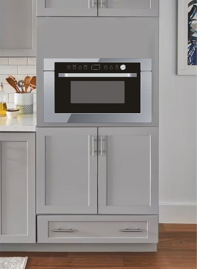 جسم الميكرويف من ستانلس ستيل مع باب يفتح لأسفل وفريم أنيق، ليضفي لمسة عصرية على مطبخك، ويضمن سهولة التنظيف والاستخدام اليومي.