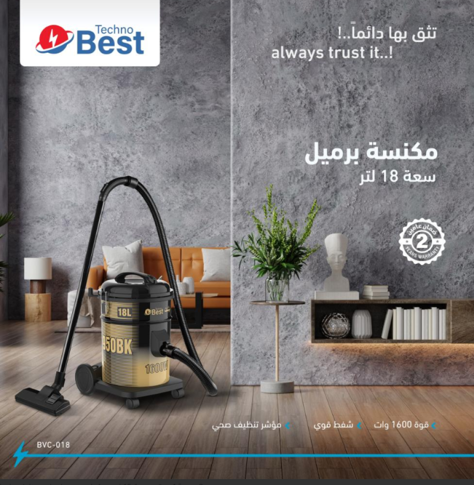 مميزات مكنسة تكنو بيست الكهربائية برميل 18 لتر في السعودية: