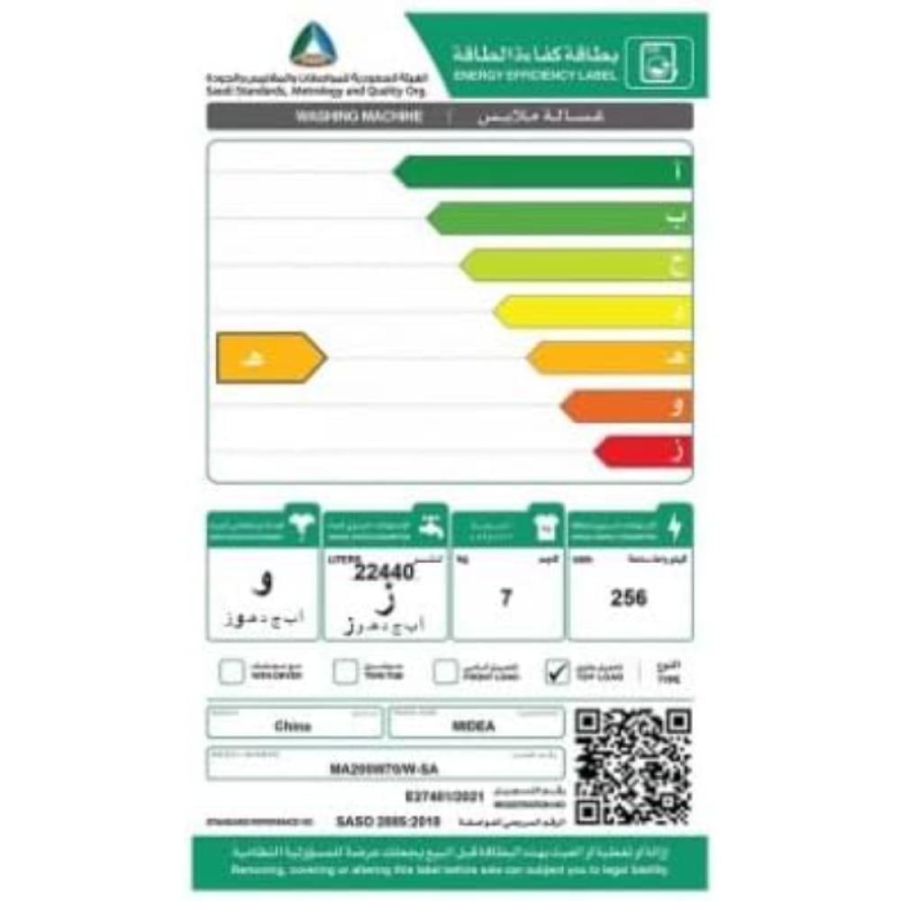 • رقم الموديل: MA200W70/W-SA، رقم الموديل الذي يسهل لك التعرف على الطراز الخاص بالغسالة.